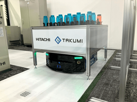 GRID式AGV「TiTra G500」を活用した自働化ラインの搬送デモンストレーションを実施。 実機と映像を組み合わせ、日立のトータルシームレスソリューション(TSS)を体験できる展示の一部として構成されています。