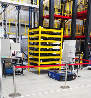 ① 一時的に使用しない空コタツを指示のもとコタツスタッカー装置までAGV搬送